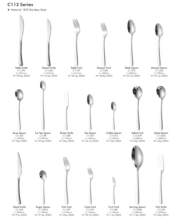C112 စီးရီးကိုအရည်အသွေးမြင့် 18/8 သံမဏိမှကျွမ်းကျင်စွာပြုလုပ်သည်။