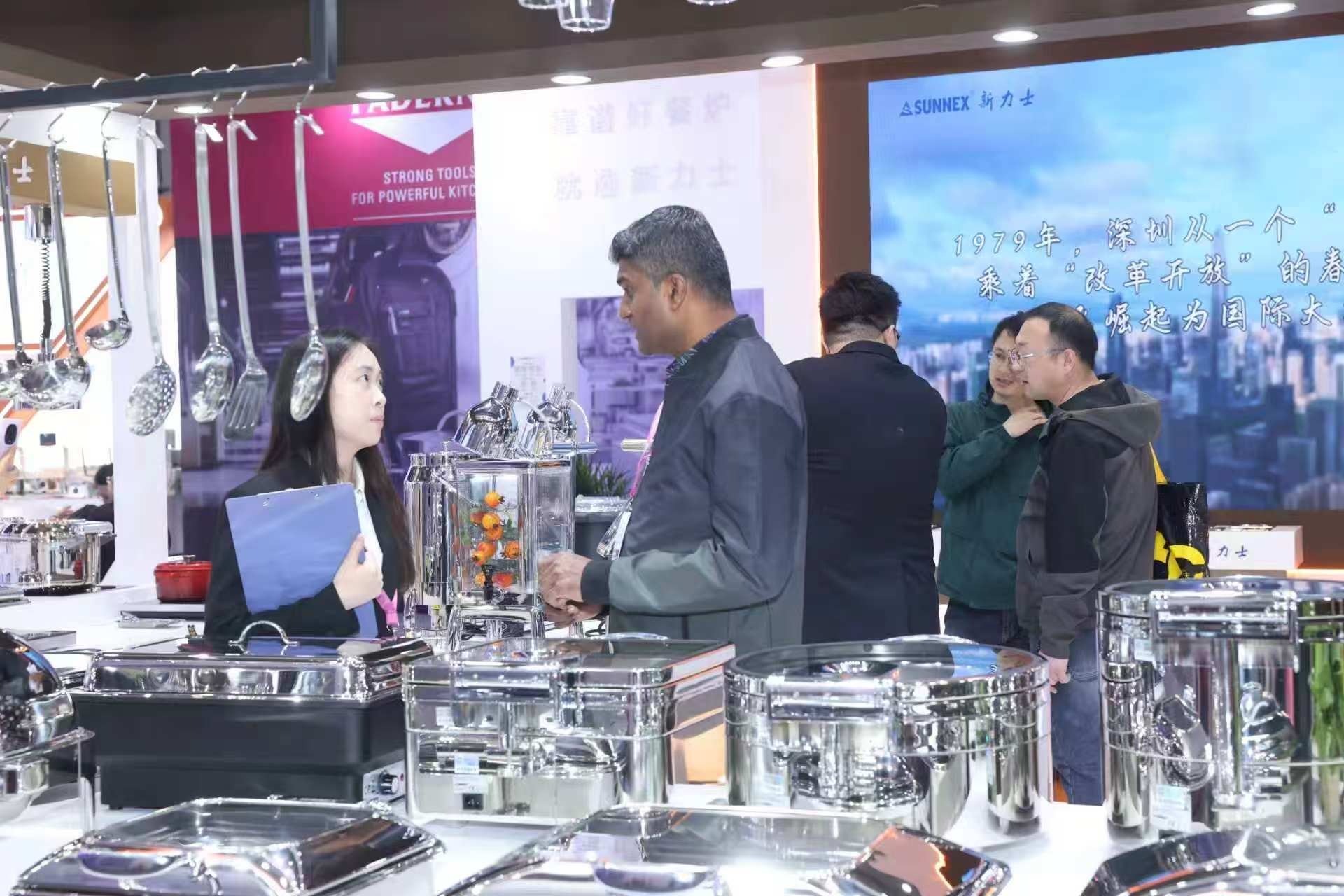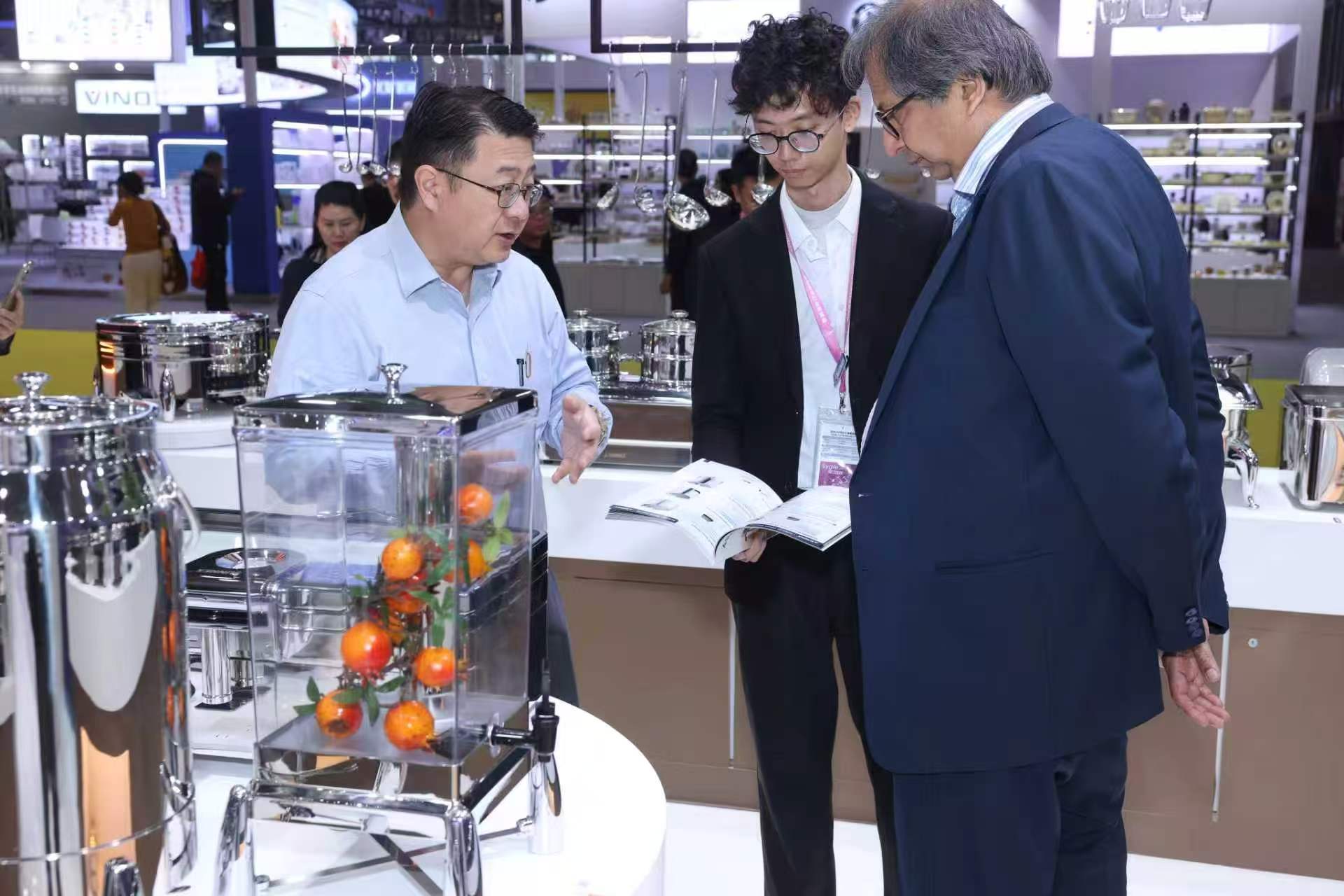 ပြပွဲအတွင်း၊ အမှတ်တံဆိပ်သည် ရေမရှိသော အခြောက်လှန်းထားသော ဟင်းလျာများ၊ ဂန္ထဝင်သံမဏိ ပန်းကန်ပြားများ၊ Verona စီးရီးနို့အိုးများ၊ ရေခဲပြွန်အဖျော်ယမကာနှင့် အခြားထုတ်ကုန်အသစ်များ၊ အမျိုးမျိုးသောအဆင့်မြင့်ဟိုတယ်များ၏ လိုအပ်ချက်များကို ဖြည့်ဆည်းပေးနိုင်ရန် အာရုံစိုက်ခဲ့သည်။ ကျွန်ုပ်တို့၏ booth သည် အရှေ့အလယ်ပိုင်း၊ အာဖရိက၊ ဥရောပ၊ အမေရိကနှင့် အရှေ့တောင်အာရှတစ်ဝှမ်းရှိ ပရော်ဖက်ရှင်နယ် ပြည်ပဝယ်လက်များထံမှ စဉ်ဆက်မပြတ်လာရောက်လည်ပတ်မှုကို လက်ခံရရှိခဲ့ပါသည်။ ကျွန်ုပ်တို့၏ ပရော်ဖက်ရှင်နယ်အဖွဲ့သည် နက်ရှိုင်းသော ပူးပေါင်းဆောင်ရွက်မှု ဆွေးနွေးမှုများအတွက် တစ်ဦးချင်း ထုတ်ကုန်မိတ်ဆက်ခြင်းနှင့် စိတ်ကြိုက်ဖြေရှင်းချက် ပံ့ပိုးမှုတို့ကို ပံ့ပိုးပေးပါသည်။